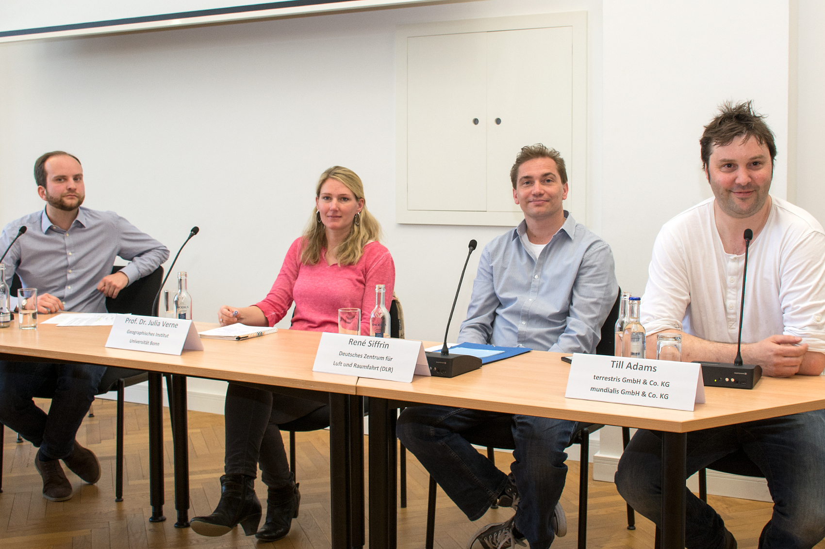 The event was introduced at 1 p.m. with a panel discussion in which various career paths for geographers were presented, as well as the question of specializations in studies with regard to the various industries. Our Managing Director Till Adams was on the podium for terrestris and also on site during the entire event.