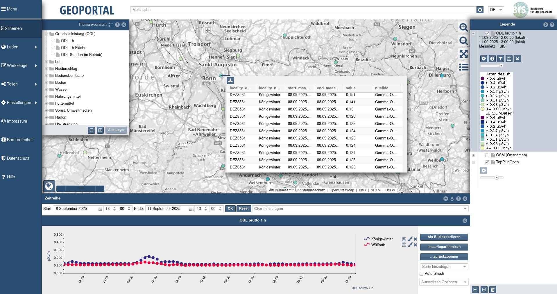 Das Geoportal des Bundesamtes für Strahlenschutz vereint Benutzerfreundlichkeit mit leistungsstarker Funktionalität: Es ermöglicht nicht nur die gezielte Suche, anschauliche Visualisierung und den einfachen Download von Geodaten, sondern überzeugt auch mit innovativen Werkzeugen wie interaktiven Zeitreihenanalysen und integriertem Routing. So wird aus reinen Geoinformationen ein vielseitiges Analyseinstrument – intuitiv bedienbar und praxisnah einsetzbar.
