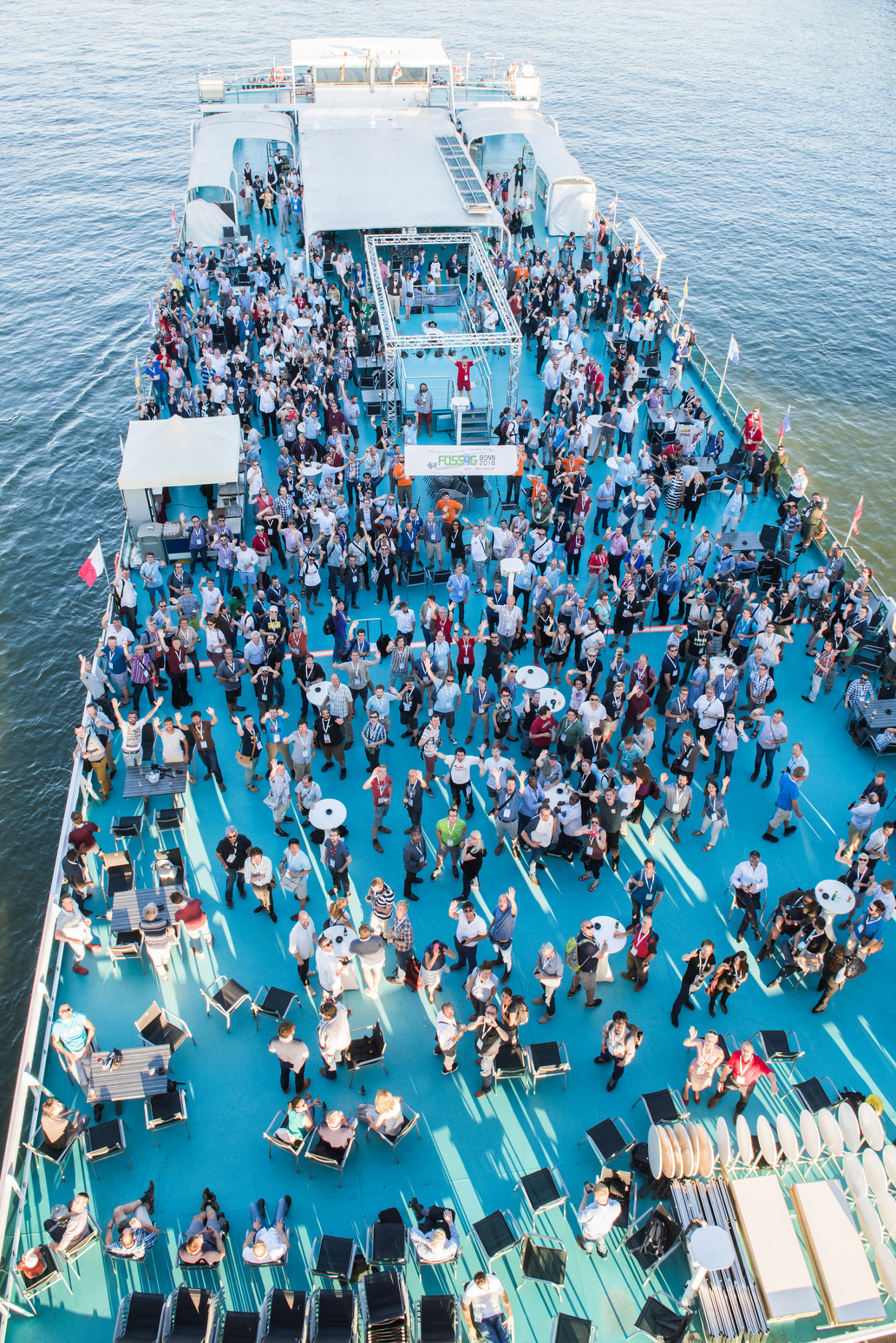Abgerundet wurde die Konferenz von verschiedenen Social Events. So wurden für die gesamte Woche fünf Kneipen der Bonner Altstadt zu „offiziellen FOSS4G Pubs“ ausgerufen, um es den Teilnehmern zu ermöglichen die offiziellen Veranstaltungen in Gesellschaft ausklingen zu lassen. Nach dem ersten Tag im WCCB gab es darüber hinaus musikalische Überraschungsgäste beim Icebreaker Event im Basecamp Bonn. Den Höhepunkt des Socializing bildete schließlich das Gala Event in Form einer Schifffahrt auf der MS Rheinenergie. Hier wussten nicht nur das gute Wetter und ein hervorragendes Essen zu überzeugen, sondern auch die musikalischen Beiträge von Cellodion, The Queen Kings und DJ Rafa sorgten für beste Stimmung an Bord.